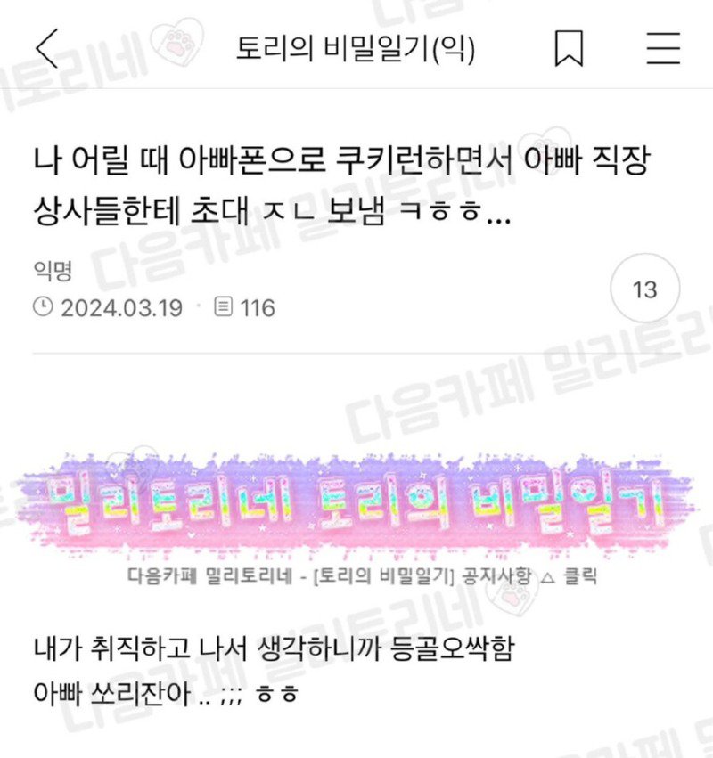 나 어릴 때 아빠폰으로 쿠키런했는데 끝까지간다 0 0 0 12.29 23:00 0 0 https://seulca1.com/bbs/board.php?bo_table=0002&wr_id=88189&page=1 Author 2 0 Lv.15 끝까지간다 15 38,583,988 (42%) 끝까지간다님 보유 포인트 : P 5,014,007 +1 12.30 굿밤되세요~ +1 12.30 출첵 12.29 영어가 우리말을 못 따라올때 12.29 놀라운 주식 대박 사례 12.29 난리난 요즘 MZ 신입 행태