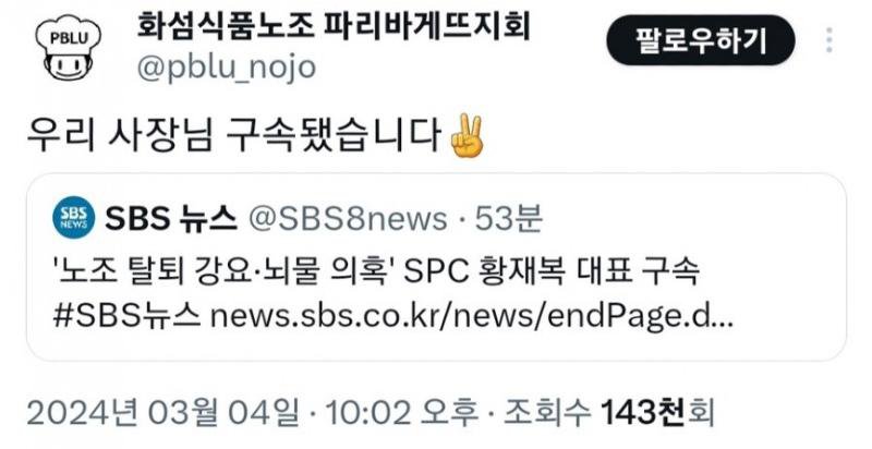 사장님이 구속되서 신난 직원들 끝까지간다 0 0 0 12.15 21:51 0 0 https://seulca1.com/bbs/board.php?bo_table=0002&wr_id=87229 Author 2 0 Lv.15 끝까지간다 15 35,459,190 (27%) 끝까지간다님 보유 포인트 : P 62,754 12.16 출첵! 12.15 굿밤이에요~ +2 12.15 내가 졌다!! +1 12.15 승무원 누나의 착각 +2 12.15 스스로에게 거짓말하며 정당화하는 뇌