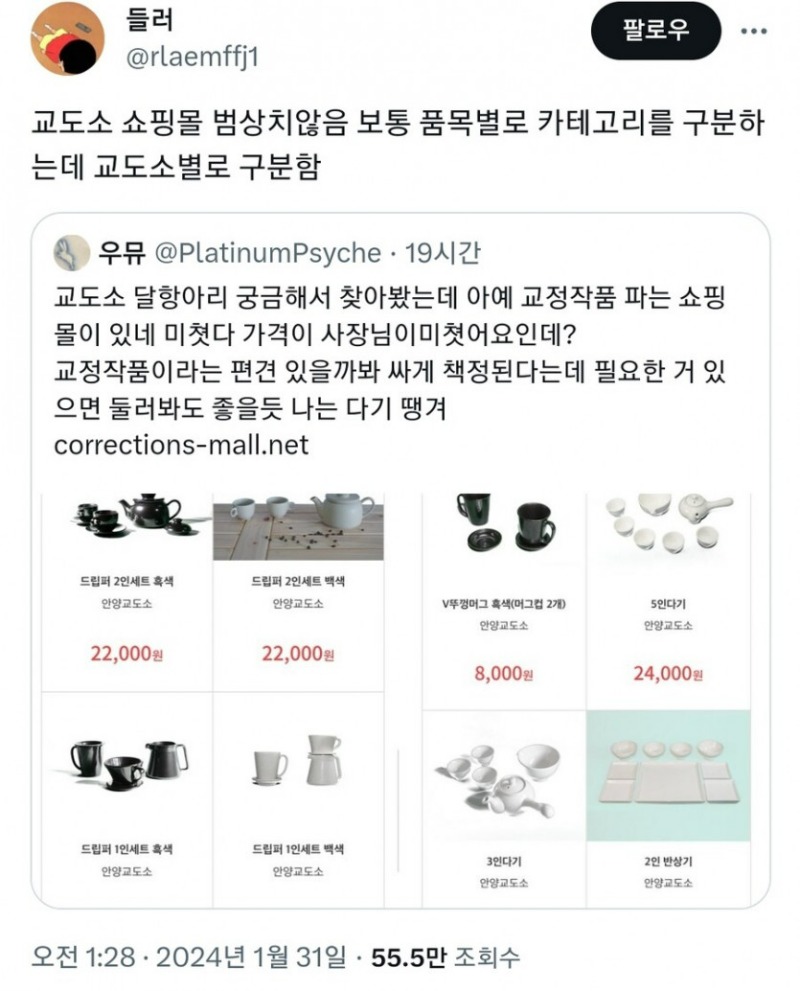 교도소 쇼핑몰 범상치않음 끝까지간다 0 0 0 21:08:51 0 0 https://seulca1.com/bbs/board.php?bo_table=0002&wr_id=93871 Author 3 0 Lv.16 끝까지간다 16 58,563,535 (42%) 끝까지간다님 보유 포인트 : P 380,760 +1 03.28 오구라 유나가 한국 팬들에게 받은 선물 +1 03.28 동시부문 최우수상 받은 초등학생 작품 +1 03.28 도미노피자 배달 근황ㅋㅋㅋ 03.28 교도소 쇼핑몰 범상치않음 03.28 인터넷 밈 특징