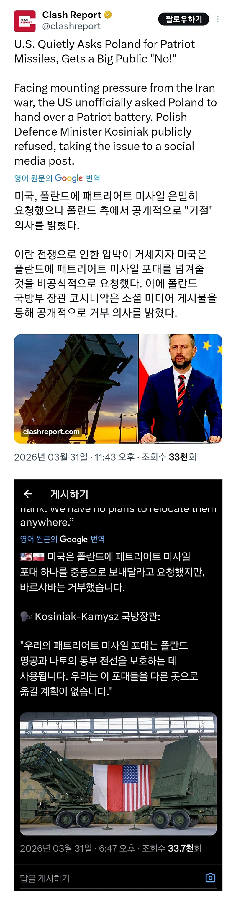 폴란드야 너희가 구매한거 공짜로 다시 주면 안되겠니?