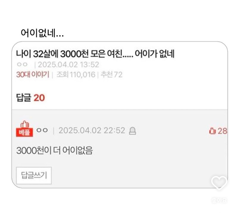 어이없네.. 계란마으리 0 0 0 01:46:54 0 0 https://seulca1.com/bbs/board.php?bo_table=0002&wr_id=94694 Author 12 6 Lv.15 계란마으리 15 37,939,548 (39%) 계란마으리님 보유 포인트 : P 9,101,524 04.09 오빠 인플레이션이 뭐양 04.09 8살 아이의 팩폭 04.09 카톡 안읽씹 해결방법 04.09 기적의 물리학자 04.09 요즘 애들은 뭔지모르는