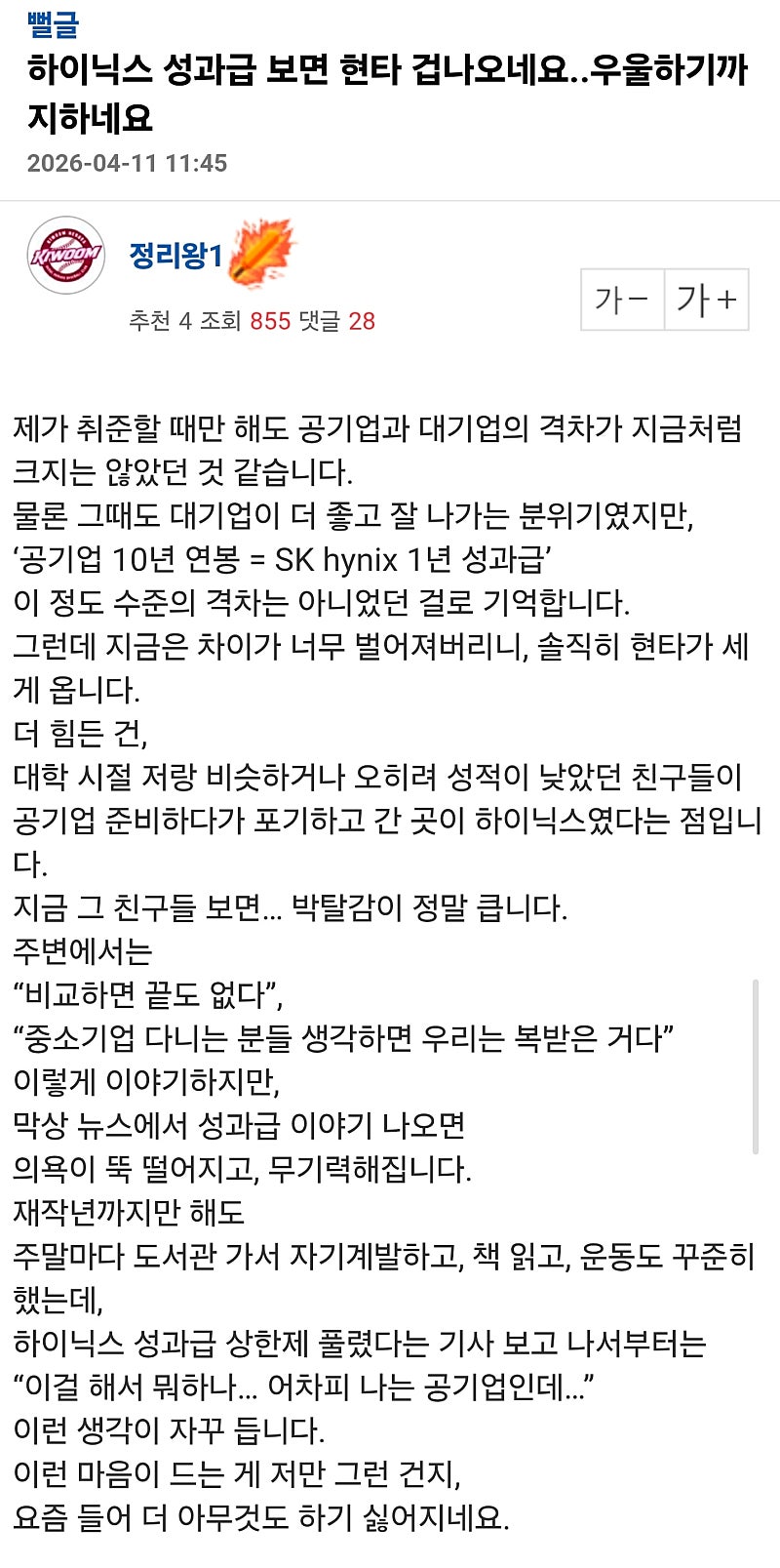 하이닉스 성과급 보면 현타 겁나게 오네요 아네모네 1 0 0 00:22:47 0 0 https://seulca1.com/bbs/board.php?bo_table=0002&wr_id=95052 Author 1 0 Lv.9 아네모네 9 5,746,236 (43%) 아네모네님 보유 포인트 : P 1,281,515 +1 04.14 0414 새벽뱃 3승 +1 04.14 0414 새벽뱃 2승 04.14 0414 새벽뱃 1승 +2 04.14 부모님과 여행만 가면 꼭 싸우는 진짜 이유 04.14 현대판 히틀러 외교부 성명 낸 국가