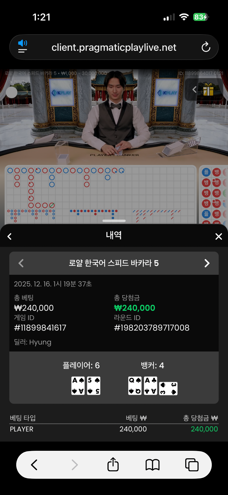 시카라 6:4 플레이어 승리 형이여임마 시안 4 2 0 01:24:56 2 0 https://seulca1.com/bbs/board.php?bo_table=baccara&wr_id=1871991 Author 1 0 Lv.12 형이여임마 12 14,254,724 (25%) 형이여임마님 보유 포인트 : P 0 +7 12.16 뱀피 2688배 +6 12.16 마담 483배 +5 12.16 마담 147배 +4 12.16 시카라 8:7 한끗 승리 +4 12.16 시카라 6:4 플레이어 승리