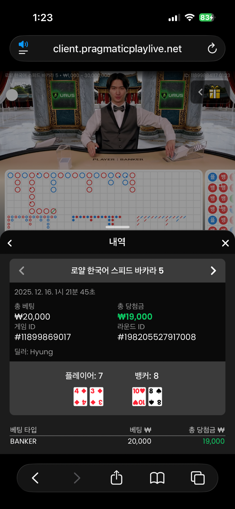 시카라 8:7 한끗 승리 형이여임마 시안 4 2 0 01:25:35 2 0 https://seulca1.com/bbs/board.php?bo_table=baccara&wr_id=1871996 Author 1 0 Lv.12 형이여임마 12 14,254,724 (25%) 형이여임마님 보유 포인트 : P 0 +7 12.16 뱀피 2688배 +6 12.16 마담 483배 +5 12.16 마담 147배 +4 12.16 시카라 8:7 한끗 승리 +4 12.16 시카라 6:4 플레이어 승리