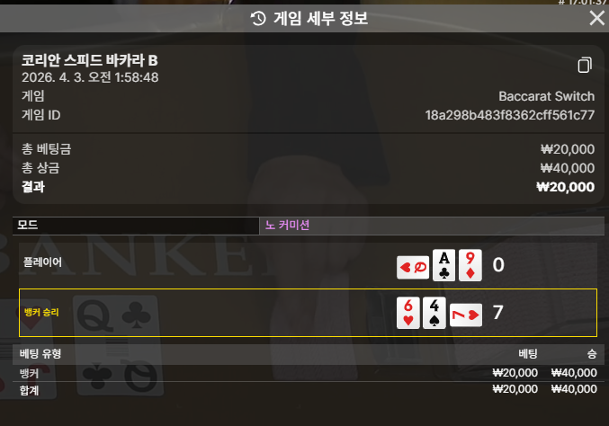 바카라 뱅커 승 0 대 7  뒷발 나이스