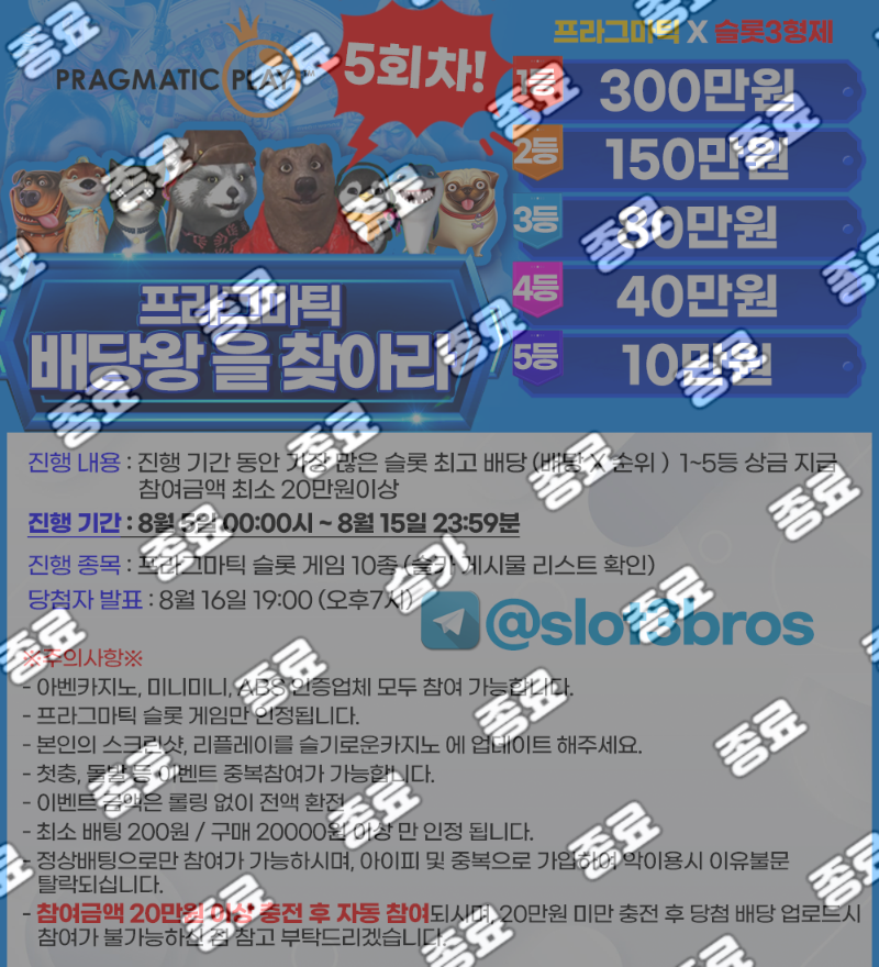 ※ 5회차 부터 아벤카지노 , 미니 카지노, ABS 카지노 전부 참여 가능합니다.