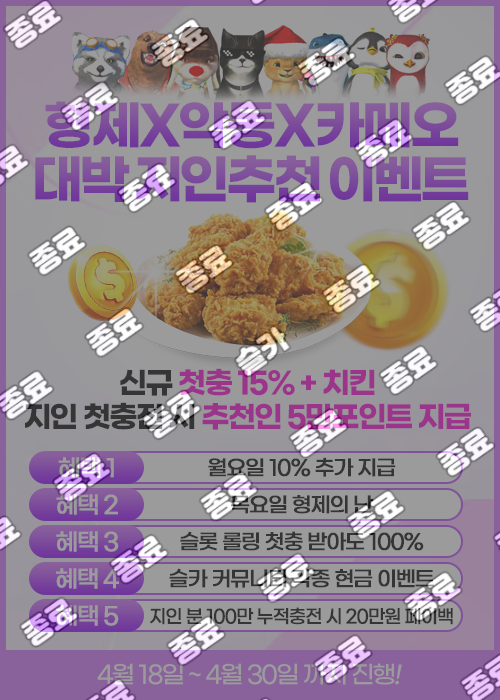 3형제X악동X카메오 지인 추천 이벤트 최고관리자 종료 2 788 0 0 2023.04.18 16:26 3형제, 악동, 카메오 지인 추천 모든 문의 는 Seulca1 텔레그램 으로 연락 주시면 상세하게 안내 드리겠습니다 0 0 Author 476 160 Lv.15 최고관리자 15 32,337,054 (11%) 최고관리자님 보유 포인트 : P 4,296,131 +10 04.16 2026년 04월 16일 진중굴 회원님의 헌티드 맥스 영상 +11 04.16 2026년 04월 16일 스코니 회원님의 멀린 맥스 영상 +12 04.16 2026년 04월 16일 시티 회원님의 북몬 맥스 영상 +3 04.16 [4월16일] 395회차 오늘의 배당을 찾아라. 번호 발표!! +8 04.15 [4월16일] 395회차 오늘의 배당을 찾아라. 번호 발표!!