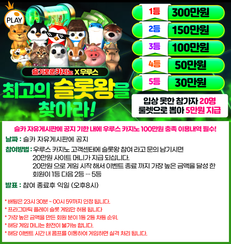 슬카 슬롯왕 이벤트 최고관리자 진행중 154 14885 56 3 2024.11.28 21:23 매달 자유게시판에 회차, 날짜 업로드됩니다 :) 해당 이벤트 게임 내역으로는 다른 이벤트 참여 불가능합니다. :) (럭키배당, 오늘의배당을찾아라, 주말의배당을찾아라 등) 56 3 Author 434 146 Lv.14 최고관리자 14 28,458,917 (77%) 최고관리자님 보유 포인트 : P 1,668,852 +3 12.29 2025년 12월 29일 제니22 회원님의 오라메2 맥스 영상 +14 12.29 슬카 115회차 활동왕 주인공은? +10 12.29 2025년 12월 29일 파이 회원님의 오라메 맥스 영상 12.29 출석 +5 12.29 [12월29일] 332회차 오늘의 배당을 찾아라. 번호 발표!!