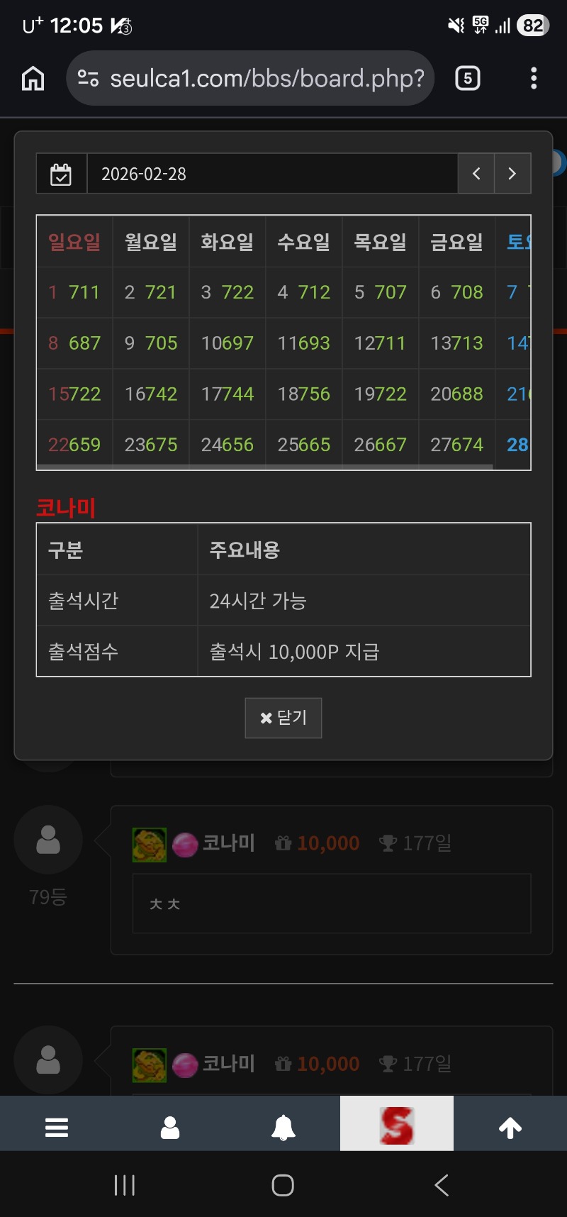 만근신청 코나미 출첵만근 20 49 0 0 02.28 01:31 * 만근이벤트 신청시 스샷 및 내용 필요없이 제목만 '만근 또는 정근 신청합니다.' * 이용하는 놀이터 및 닉네임을 미작성시 당첨 무효가 될수있습니다. 이용 놀이터 아벤 놀이터 닉네임 코나미 0 0 Author 4 0 Lv.12 코나미 12 13,297,867 (5%) 코나미님 보유 포인트 : P 8,048,756 +34 03.04 스윗보난자1000 6246 03.04 점심 만근 드세요 +4 03.04 돈ㅇㅣ 수익 편쿱 03.04 ㅊㅊ +1 03.03 [비밀글] 편의점 쿱 교환신청