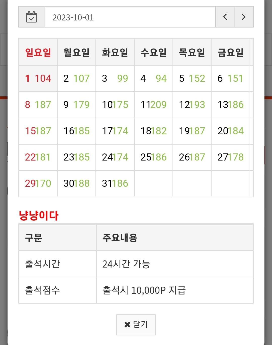 출석만근 신청이요 냥냥이다 출석만근 5 374 0 0 2023.11.01 00:19 만근 맞는건가? 총 22일 출석인뎅ㅎ 0 0 Author 2 1 Lv.9 냥냥이다 9 6,660,813 (66%) 냥냥이다님 보유 포인트 : P 1,391,388