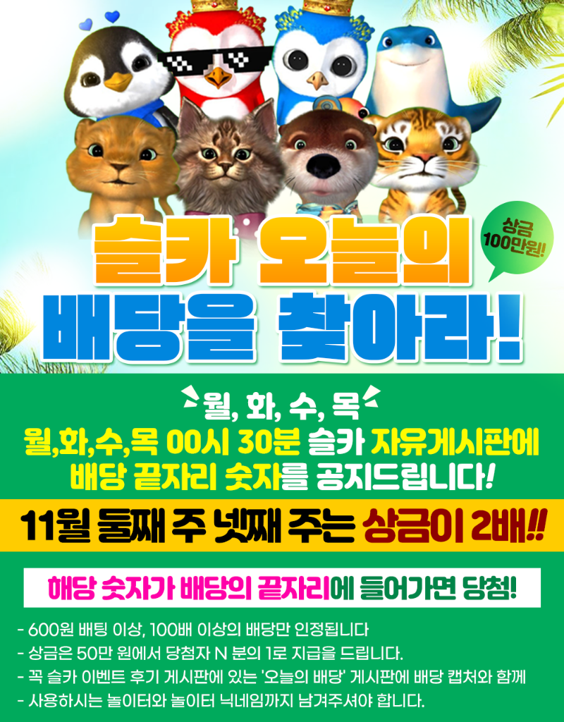 월, 화, 수, 목 00시 10분에 슬카 이벤트후기게시판