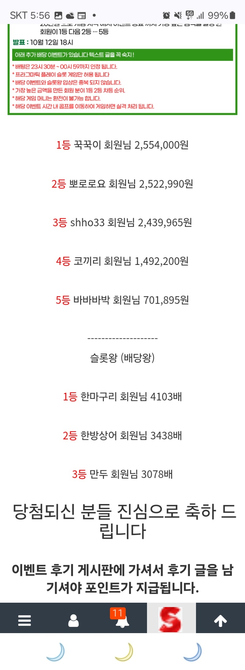 슬롯왕 배당왕 3등당첨 만두 슬롯왕 94 340 2 0 2024.10.12 05:58 * 이용하는 놀이터 및 닉네임을 미작성시 당첨 무효가 될수있습니다. 이용 놀이터 우루스 놀이터 닉네임 만두 2 0 Author 11 3 Lv.14 만두 14 23,713,418 (10%) 만두님 보유 포인트 : P 1,017,031 03.03 출석 03.02 출석 03.01 출석 +19 02.28 만근신청 02.28 출석