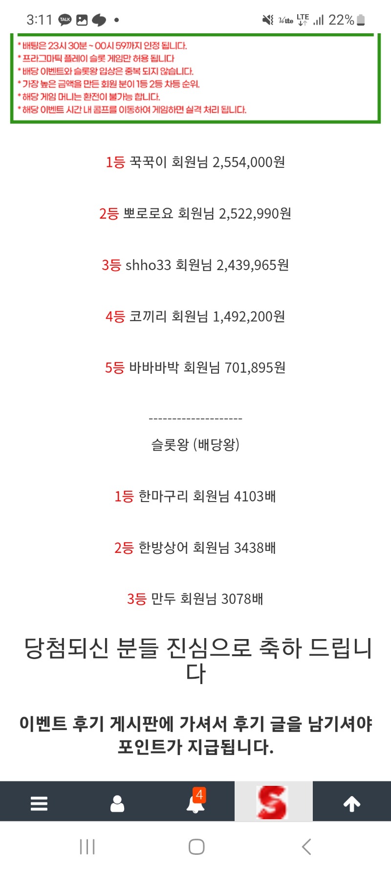 슬롯왕 배당왕 2등당첨!! 한방상어 슬롯왕 45 257 2 0 2024.10.12 03:12 * 이용하는 놀이터 및 닉네임을 미작성시 당첨 무효가 될수있습니다. 이용 놀이터 우루스 놀이터 닉네임 한방상어 감사합니다 2 0 Author 1 1 Lv.11 한방상어 11 11,238,920 (41%) 한방상어님 보유 포인트 : P 730,900 03.03 ㅊㅅ 03.02 ㅊㅅ 03.01 ㅊㅅ +20 02.28 출석만근 신청합니다 02.28 ㅊㅅ