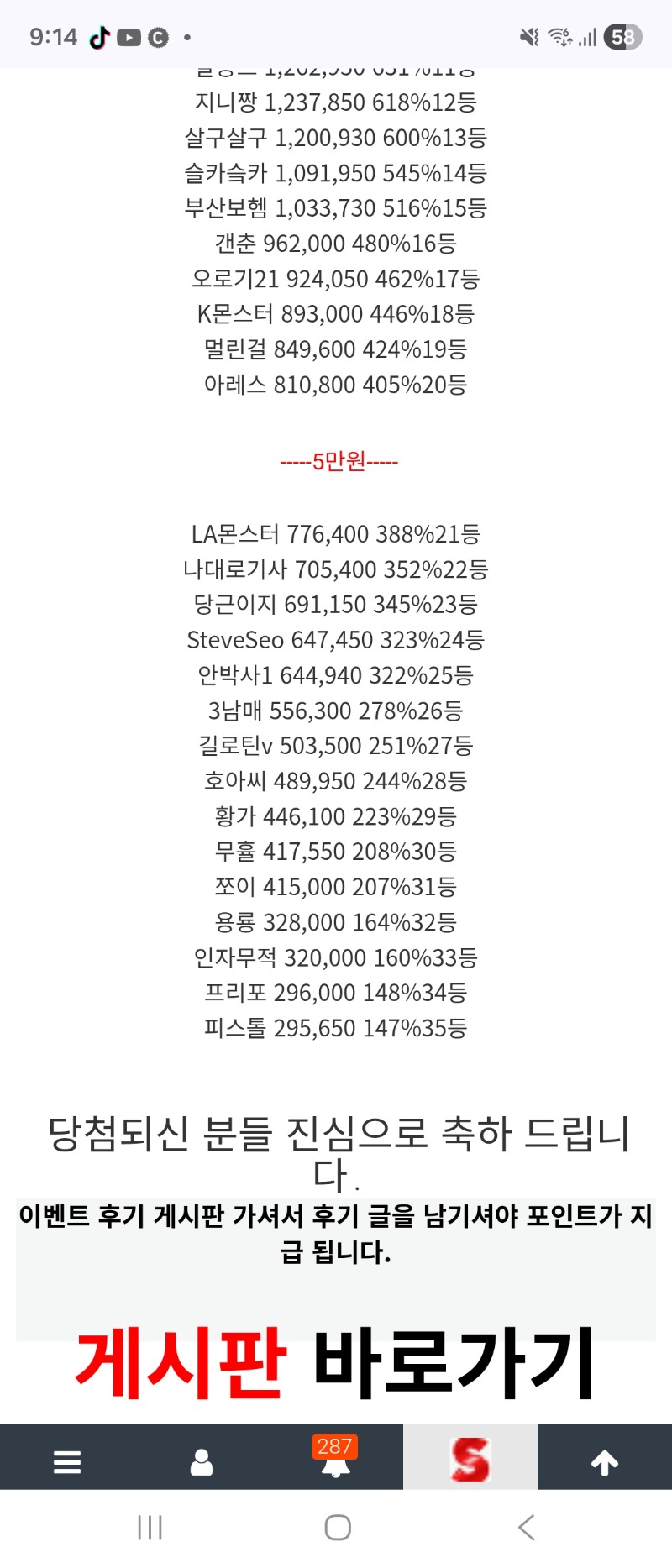 롤링왕26등 안박사 롤링왕 27 81 2 0 02.22 21:15 * 만근이벤트 신청시 스샷 및 내용 필요없이 제목만 '만근 또는 정근 신청합니다.' * 이용하는 놀이터 및 닉네임을 미작성시 당첨 무효가 될수있습니다. 이용 놀이터 나인 놀이터 닉네임 안박사1 2 0 Author 2 0 Lv.11 안박사 11 11,364,097 (45%) 안박사님 보유 포인트 : P 239,060 03.20 ㅊㅅ 03.19 ㅊㅅ 03.17 ㅊ 03.16 Hfgv 03.15 ㅊㅎ