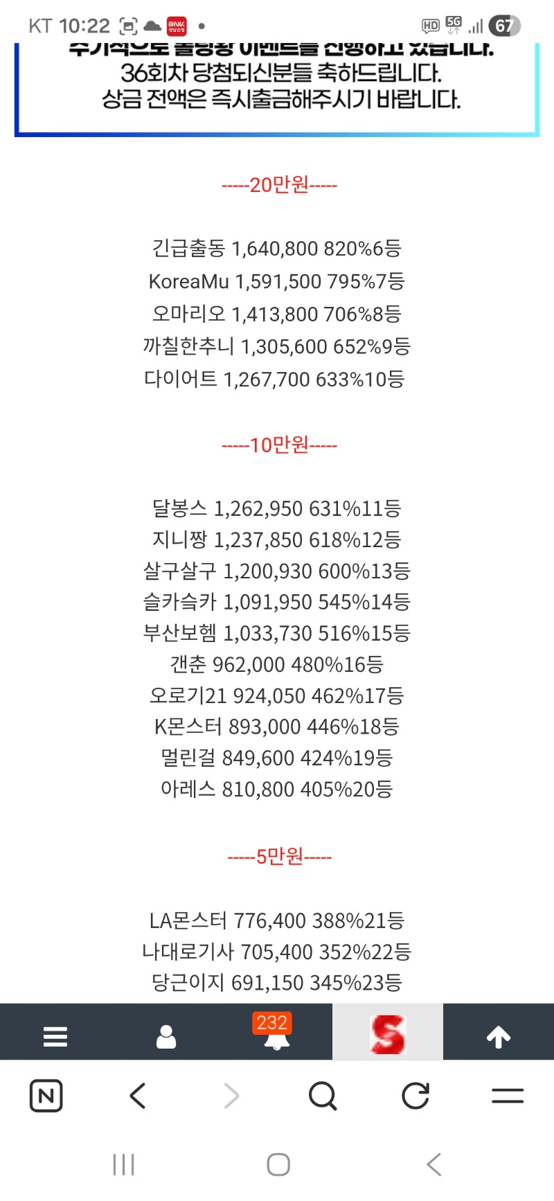 롤링왕11등 맥스윈 롤링왕 30 102 2 0 02.22 22:23 * 만근이벤트 신청시 스샷 및 내용 필요없이 제목만 '만근 또는 정근 신청합니다.' * 이용하는 놀이터 및 닉네임을 미작성시 당첨 무효가 될수있습니다. 이용 놀이터 나인 놀이터 닉네임 달봉스 2 0 Author 6 3 Lv.15 맥스윈 15 42,856,860 (64%) 맥스윈님 보유 포인트 : P 48,886 03.17 출 +25 03.16 공천335배 +17 03.16 오라메394배 03.16 출 +27 03.15 멀린1927배