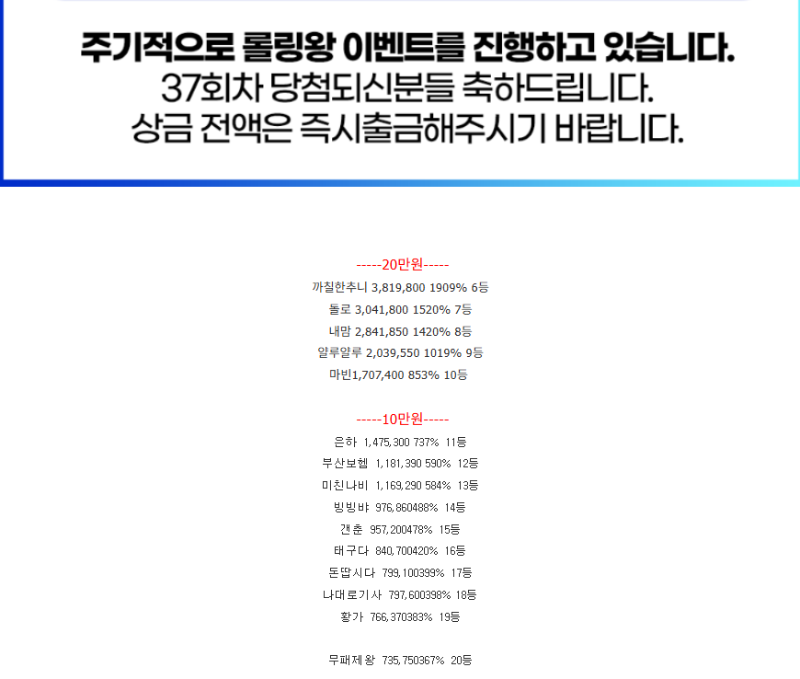롤링왕 입상 나대로기사 롤링왕 17 40 1 0 03.29 18:18 * 만근이벤트 신청시 스샷 및 내용 필요없이 제목만 '만근 또는 정근 신청합니다.' * 이용하는 놀이터 및 닉네임을 미작성시 당첨 무효가 될수있습니다. 이용 놀이터 나인 놀이터 닉네임 나대로기사 1 0 Author 3 1 Lv.12 나대로기사 12 14,884,040 (37%) 나대로기사님 보유 포인트 : P 7,800 +2 03.29 이모~~ 리필좀... +1 03.29 [비밀글] 포교신청 +17 03.29 롤링왕 입상 +7 03.29 레뷰 돌발 결과 +20 03.29 와일드스컬 바닥 960