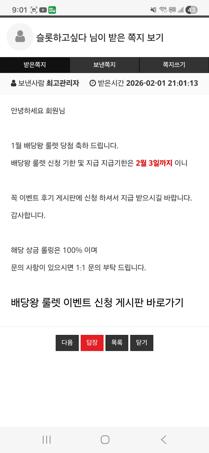 룰렛당첨 슬롯하고싶다 배당왕 25 78 2 0 02.01 21:19 * 만근이벤트 신청시 스샷 및 내용 필요없이 제목만 '만근 또는 정근 신청합니다.' * 이용하는 놀이터 및 닉네임을 미작성시 당첨 무효가 될수있습니다. 이용 놀이터 우루스 놀이터 닉네임 슬롯하고싶다 간만에 룰렛당첨이내요 감사드립니다^^ 2 0 Author 5 1 Lv.16 슬롯하고싶다 16 53,220,001 (16%) 슬롯하고싶다님 보유 포인트 : P 7,530 02.13 ㅊㅊ +16 02.13 황금물조리개 리플 x +5 02.12 마지막 복권당첨 02.12 리필완료 +29 02.12 토라메 138배