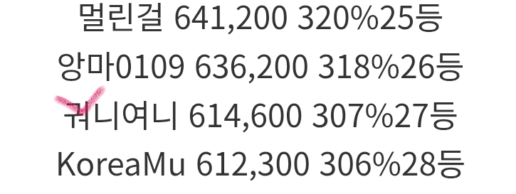 오예~~~롤링왕 순위당첨 감사해요 여니여니 롤링왕 37 142 3 0 11.23 19:29 * 만근이벤트 신청시 스샷 및 내용 필요없이 제목만 '만근 또는 정근 신청합니다.' * 이용하는 놀이터 및 닉네임을 미작성시 당첨 무효가 될수있습니다. 이용 놀이터 나인 놀이터 닉네임 궈니여니 3 0 Author 5 3 Lv.13 여니여니 13 20,002,787 (40%) 여니여니님 보유 포인트 : P 259,931 11.24 출췍 +37 11.23 오예~~~롤링왕 순위당첨 감사해요 11.22 출췍 +42 11.21 롤링왕종료요. +9 11.21 랑아 고마워~~