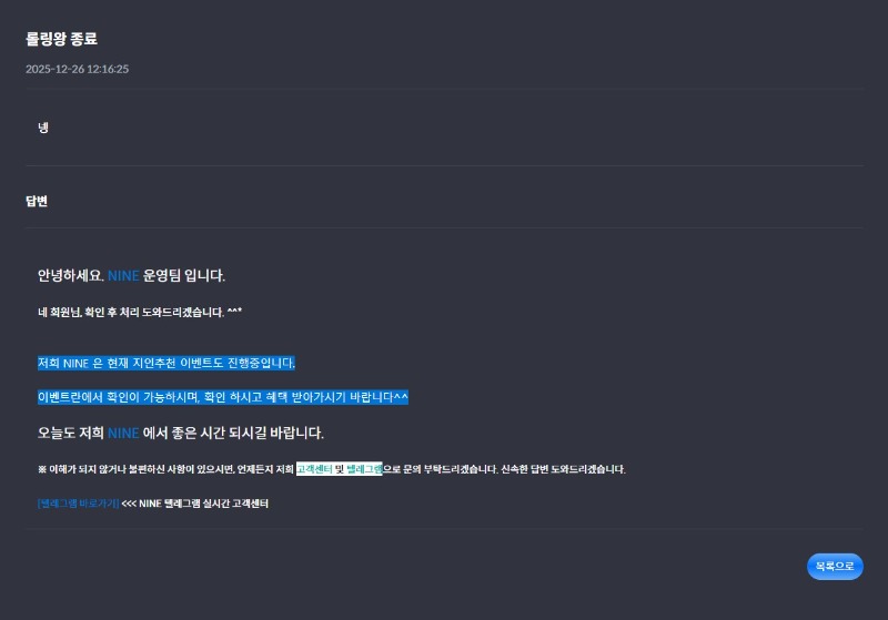 롤링왕 종료 프리포 롤링왕 5 13 1 0 13:06:40 * 만근이벤트 신청시 스샷 및 내용 필요없이 제목만 '만근 또는 정근 신청합니다.' * 이용하는 놀이터 및 닉네임을 미작성시 당첨 무효가 될수있습니다. 이용 놀이터 나인 놀이터 닉네임 프리포 1 0 Author 1 0 Lv.9 프리포 9 4,396,948 (9%) 프리포님 보유 포인트 : P 2,395,583 +19 12.26 좀스 2995배 +3 12.26 랜덤키링 당춈! 12.26 출첵 갓짬 +2 12.26 형난포 리턴 감사합니당! +5 12.26 롤링왕 종료