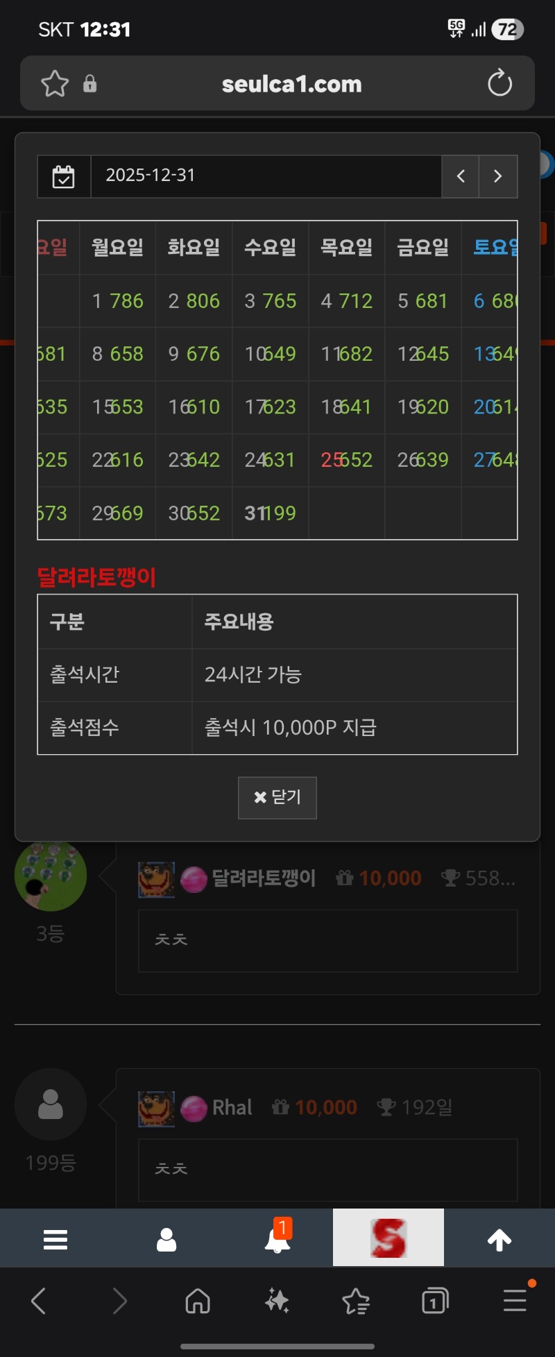 558일째 만그니 달려라토깽이 출첵만근 29 68 2 0 2025.12.31 00:33 * 이용하는 놀이터 및 닉네임을 미작성시 당첨 무효가 될수있습니다. 이용 놀이터 시안 놀이터 닉네임 달려라토깽이 558일째 망그닠ㅋ 2년 가보자≈≈ 2 0 Author 1 1 Lv.9 달려라토깽이 9 7,120,142 (78%) 달려라토깽이님 보유 포인트 : P 24,123,283 01.21 ㅊㅊ 01.20 ㅊㅊ 01.19 ㅊㅊ +1 01.18 [비밀글] 고마워 달달이 01.18 ㅊㅊ