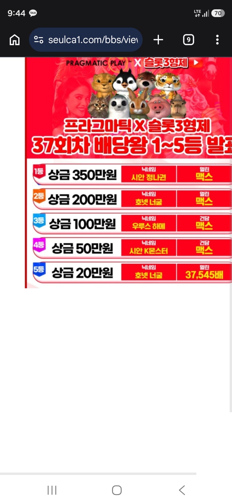 배당왕당첨 너굴 배당왕 3 12 0 0 22:08:09 * 만근이벤트 신청시 스샷 및 내용 필요없이 제목만 '만근 또는 정근 신청합니다.' * 이용하는 놀이터 및 닉네임을 미작성시 당첨 무효가 될수있습니다. 이런날이 오긴오네요ㅎㅎ 이용 놀이터 호넷 놀이터 닉네임 너굴 0 0 Author 1 0 Lv.5 너굴 5 890,619 (81%) 너굴님 보유 포인트 : P 352,844 +3 04.01 배당왕당첨 +7 04.01 배당왕2등 당첨 04.01 ㅊㅅ 03.31 ㅊㅅ 03.30 ㅊㅅ