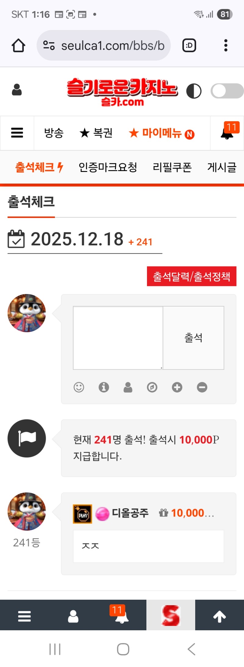 출첵 디올공주 0 0 0 01:16:56 *기프티콘 바코드 노출 주의* <- 0 0 https://seulca1.com/bbs/board.php?bo_table=free&wr_id=3395468&page=1 Author 18 11 Lv.18 디올공주 18 148,194,991 (80%) 디올공주님 보유 포인트 : P 5,190,355 +6 12.18 새벽슬롯 갓짜 12.18 출첵 +38 12.17 켓트라227배*800냥 +36 12.17 럭피284배*1000냥 +32 12.17 수익조금이라도 봤을때 환~^