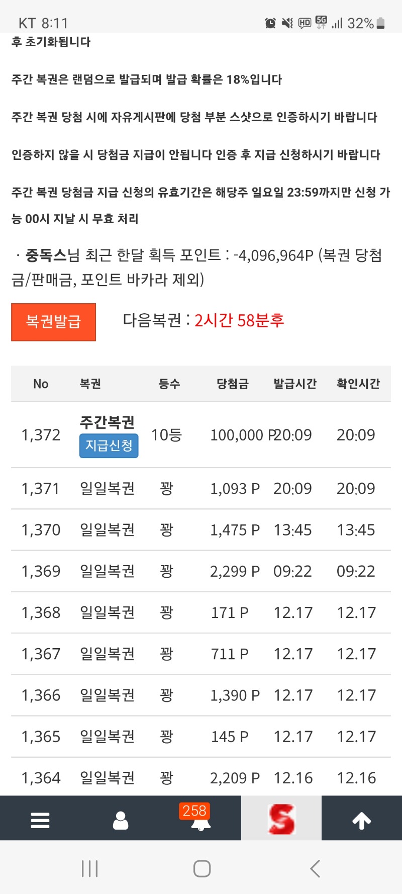 주복 10등당첨 중독스 4 0 0 20:12:08 *기프티콘 바코드 노출 주의* <- 감사합니다 0 0 https://seulca1.com/bbs/board.php?bo_table=free&wr_id=3397959&page=1 Author 1 0 Lv.10 중독스 10 9,029,840 (51%) 중독스님 보유 포인트 : P 288,696 +4 12.18 주복 10등당첨 12.18 형난 +2 12.17 이모소환 +3 12.17 굿모닝 +31 12.16 라이트닝 식보 번개 쾅