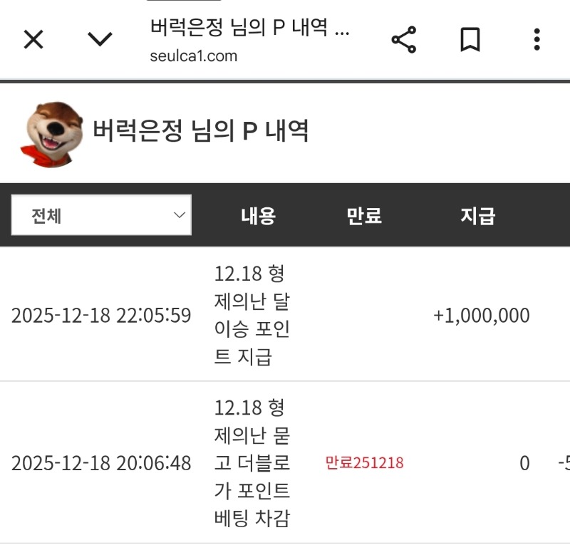 울달이 울펭이 고생했어~ 버럭은정 6 0 0 22:17:01 *기프티콘 바코드 노출 주의* <- 울달이 오랜만에 이겨서 좋다~ 0 0 https://seulca1.com/bbs/board.php?bo_table=free&wr_id=3398198&page=1 Author 1 0 Lv.9 버럭은정 9 4,751,327 (18%) 버럭은정님 보유 포인트 : P 27,585,970 +6 12.18 울달이 울펭이 고생했어~ +8 12.18 펭이 추겜 당춈 +12 12.18 최바비 1.2등 나이스~~ +6 12.16 펭이추겜 당춈 +9 12.15 펭이추겜 수익쿱