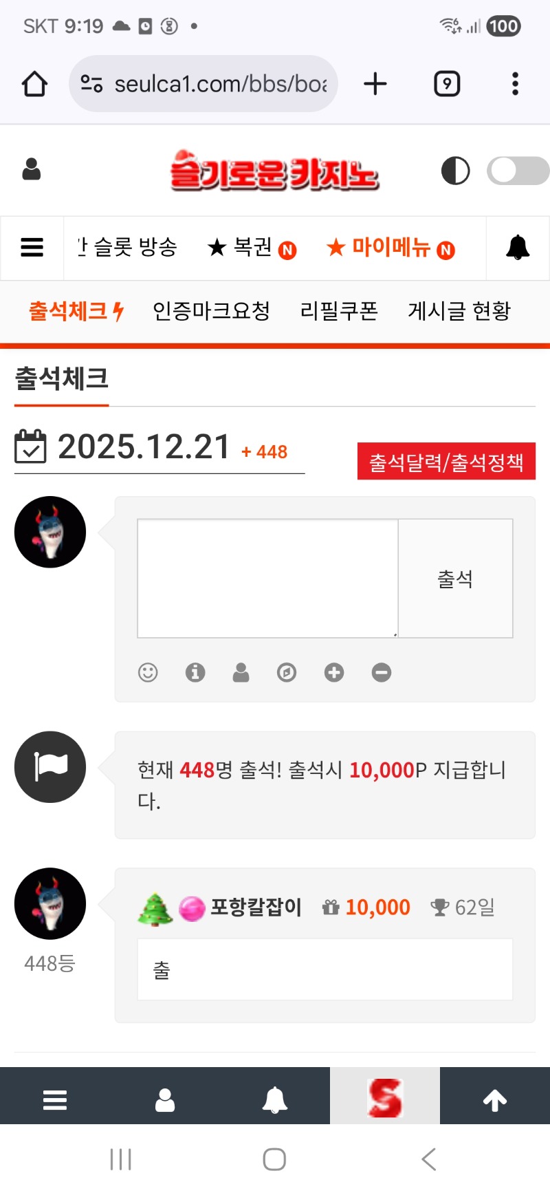 출 석. 포항칼잡이 0 0 0 09:20:01 *기프티콘 바코드 노출 주의* <- 0 0 https://seulca1.com/bbs/board.php?bo_table=free&wr_id=3404150&page=1 Author 3 0 Lv.12 포항칼잡이 12 13,391,544 (7%) 포항칼잡이님 보유 포인트 : P 110,868 12.21 출 석. +2 12.21 근데 주복 게시글 조건이 안되겠는데 ㅡ,ㅡ +5 12.21 주복4등 갑작히. ㅎ 12.19 팽이 또진겨 ㅡ,ㅡ +17 12.18 닭235배