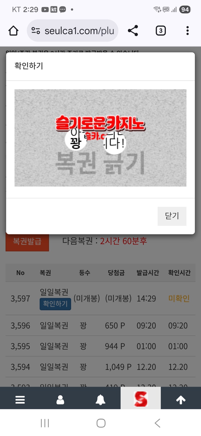 오후복권은..꽝 ㅠ 지킴이 1 0 0 14:30:10 *기프티콘 바코드 노출 주의* <- 0 0 https://seulca1.com/bbs/board.php?bo_table=free&wr_id=3404671&page=1 Author 9 4 Lv.18 지킴이 18 130,815,559 (51%) 지킴이님 보유 포인트 : P 208,605 +2 12.21 최바비 시청료 납부~~ +2 12.21 커피한잔 하세요 +2 12.21 출첵 인증 +1 12.21 오후복권은..꽝 ㅠ +2 12.21 모닝복권은..꽝