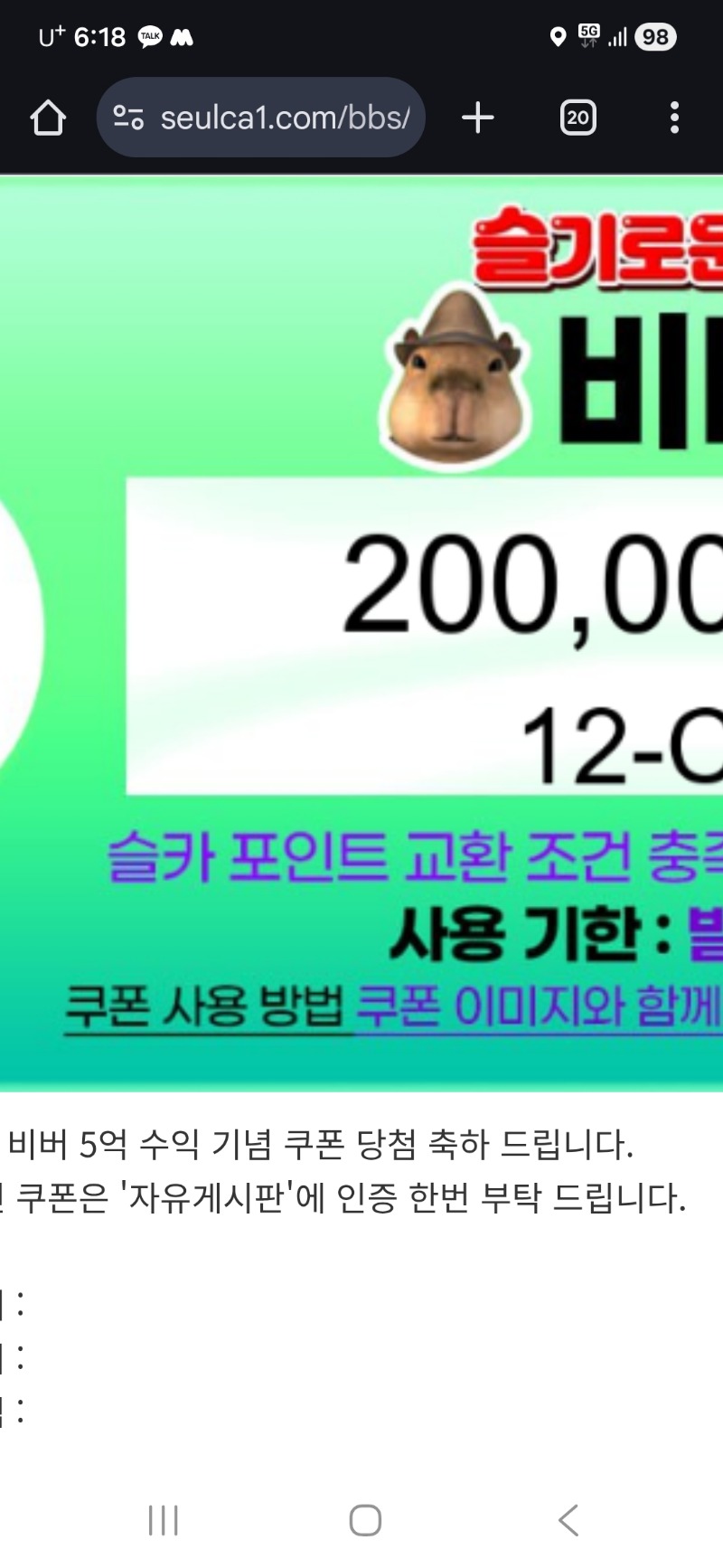 비버쿠폰감사 콩사탕 3 1 0 18:19:44 *기프티콘 바코드 노출 주의* <- 1 0 https://seulca1.com/bbs/board.php?bo_table=free&wr_id=3405422&page=1 Author 2 0 Lv.11 콩사탕 11 10,413,433 (13%) 콩사탕님 보유 포인트 : P 808,159 +1 12.21 [비밀글] 쿠폰교환 +3 12.21 비버쿠폰감사 +1 12.19 [비밀글] 포교신청 +4 12.18 일복5등 12.17 좋은밤~~
