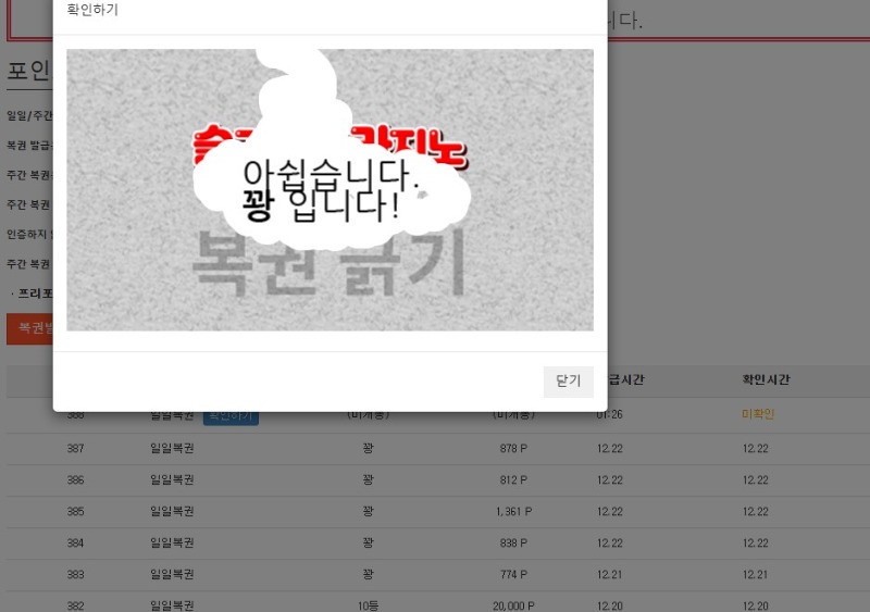 첫복은 꽝이지라~ 프리포 1 0 0 01:26:53 *기프티콘 바코드 노출 주의* <- 0 0 https://seulca1.com/bbs/board.php?bo_table=free&wr_id=3409359&page=1 Author 1 0 Lv.9 프리포 9 4,237,576 (5%) 프리포님 보유 포인트 : P 1,218,265 +1 12.23 첫복은 꽝이지라~ 12.23 출췍~ +4 12.22 레전드히어로 138 +7 12.22 카이센2 244배 +4 12.22 똔부장 밴딧땅땅 맥스추겜포~