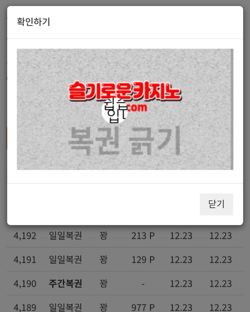 복권 한번 긁고 ~~!!^^ 우니25 0 0 0 00:46:49 *기프티콘 바코드 노출 주의* <- 일복 꽝 나왔어여 ~~~!! 굳밤 보내세요 0 0 https://seulca1.com/bbs/board.php?bo_table=free&wr_id=3411931&page=1 Author 11 5 Lv.17 우니25 17 92,173,059 (73%) 우니25님 보유 포인트 : P 6,545,463 +1 12.24 바카라 2승 뒷발 9승~~!! +1 12.24 바카라 무~~~!! +1 12.24 바카라 1승 ~~!! +7 12.24 로얄 슈가1000 147배 +16 12.24 로얄 슈가1000 818배~