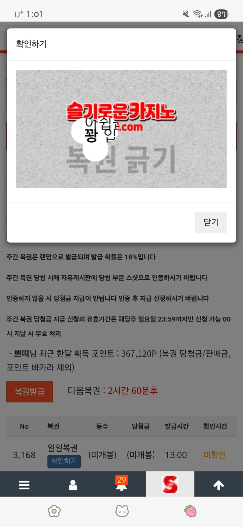 점심 복권 꽝 쁘띠 3 0 0 13:01:27 *기프티콘 바코드 노출 주의* <- 0 0 https://seulca1.com/bbs/board.php?bo_table=free&wr_id=3422787&page=1 Author 15 4 Lv.17 쁘띠 17 72,582,952 (8%) 쁘띠님 보유 포인트 : P 1,510,296 +5 12.27 슬포150만 +3 12.27 점심 복권 꽝 +1 12.27 아침 복권 꽝 +3 12.27 출첵 +11 12.27 토라메 196배