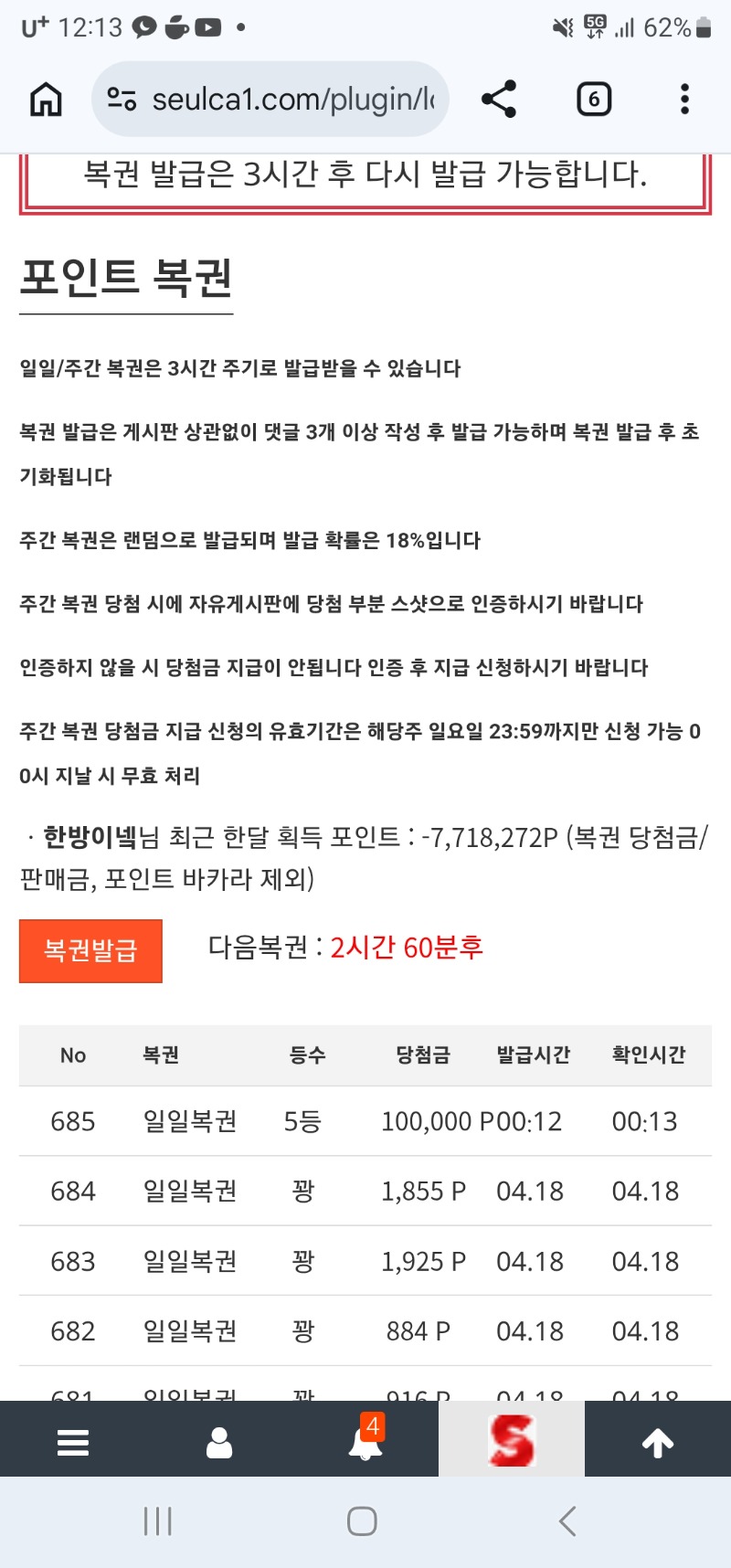 일복 5등 담첨!! 한방이넼 5 0 0 00:13:54 *기프티콘 바코드 노출 주의* <- 감사합니다 0 0 https://seulca1.com/bbs/board.php?bo_table=free&wr_id=3807876&page=1 Author 4 1 Lv.10 한방이넼 10 8,286,994 (14%) 한방이넼님 보유 포인트 : P 445,224 +5 04.19 일복 5등 담첨!! +4 04.18 맛점하세요 +3 04.18 좋은아침 입니다. +1 04.17 [비밀글] 포인트 교환 +35 04.17 5프로즌 2413배