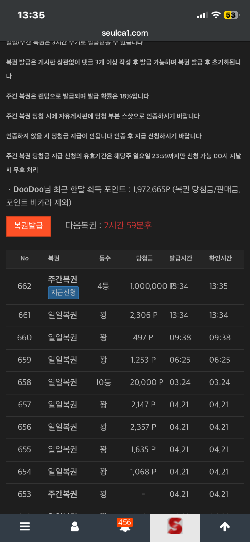 주복4등 당첨!! DooDoo 13 1 0 13:36:11 *기프티콘 바코드 노출 주의* <- 1 0 https://seulca1.com/bbs/board.php?bo_table=free&wr_id=3821794&page=1 Author 0 0 Lv.9 DooDoo 9 6,466,789 (61%) DooDoo님 보유 포인트 : P 1,903,425 +13 04.22 주복4등 당첨!! 04.21 미형난 참여 완료!! +1 04.21 이벤 커피 잘 감사 +2 04.21 출첵 완료 +7 04.20 주복 5등 당첨