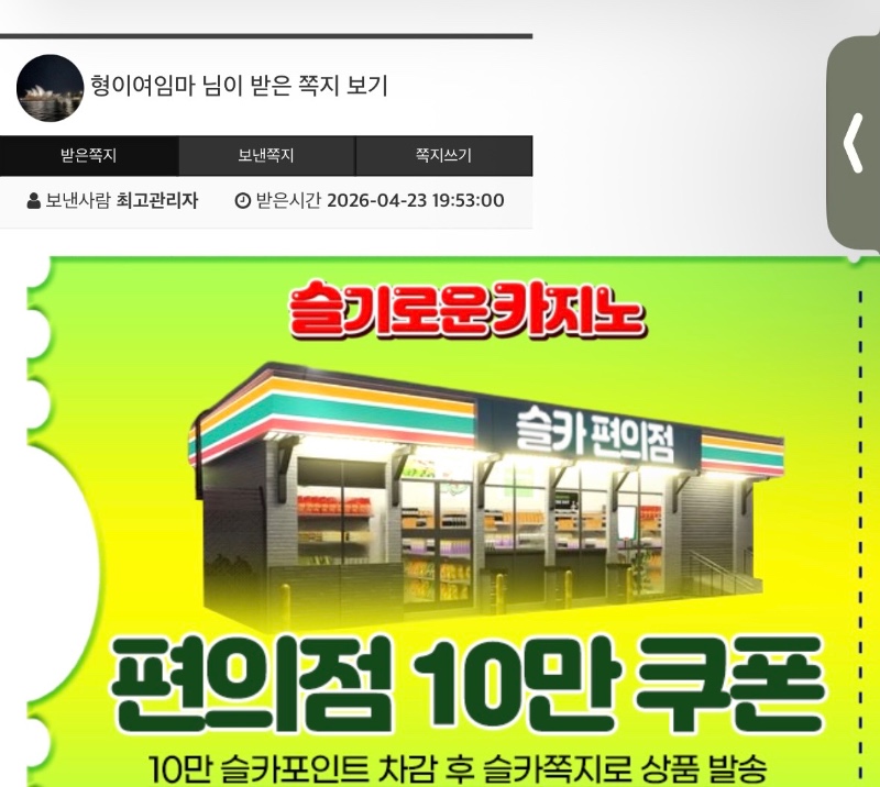 양아부지 편쿱 감사합니다 형이여임마 1 0 0 20:00:01 *기프티콘 바코드 노출 주의* <- ㅇㅇㅇㅇㅇㅇㅇㅇㅇㅇㅇㅇㅇㅇㅇㅇㅇㅇㅇㅇㅇㅇㅇㅇㅇㅇㅇㅇㅇㅇㅇㅇㅇ 0 0 https://seulca1.com/bbs/board.php?bo_table=free&wr_id=3827045&page=1 Author 2 0 Lv.15 형이여임마 15 31,642,035 (8%) 형이여임마님 보유 포인트 : P 3,001,454 +1 04.23 양아부지 편쿱 감사합니다 +1 04.23 [비밀글] 편의점쿠폰 교환 +2 04.23 맛저하세용~~ +3 04.23 맛점하세요~ +27 04.23 시카라 마지막 8:4 패배 ㅜㅜ