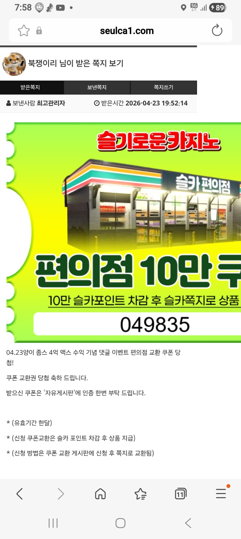 양이 맥스 편쿱. 북쟁이리 1 0 0 20:01:29 *기프티콘 바코드 노출 주의* <- 양아.땡큐. 고맙고 잘 쓰도록 할께. 0 0 https://seulca1.com/bbs/board.php?bo_table=free&wr_id=3827051&page=1 Author 4 3 Lv.15 북쟁이리 15 31,723,698 (8%) 북쟁이리님 보유 포인트 : P 18,720 04.23 형난 시작이네요. +1 04.23 양이 맥스 편쿱. 04.23 시안 형난 이벤트 참여완료. +2 04.23 랑이 럭포 당첨...ㅎㅎ 04.23 이모 소환