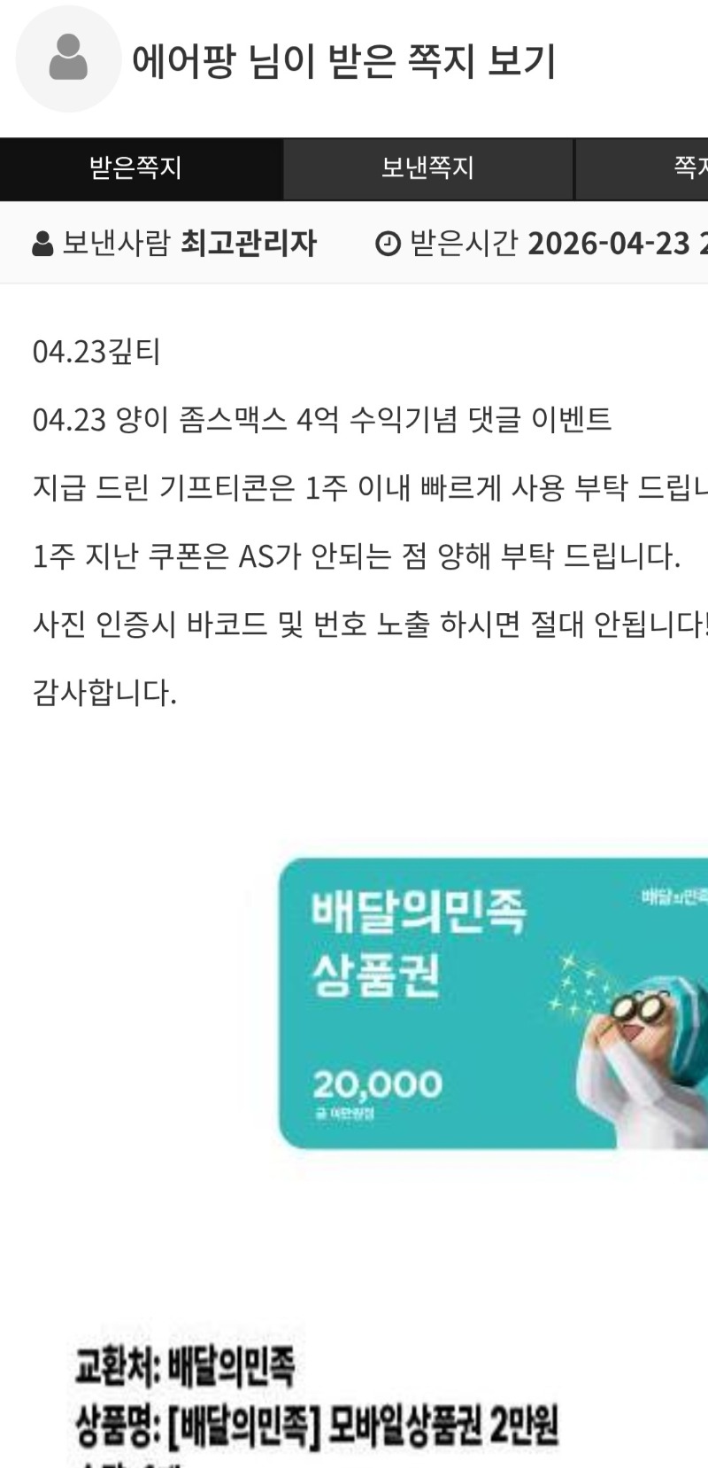 양이 맥스 쿠폰 에어팡 1 0 0 20:16:17 *기프티콘 바코드 노출 주의* <- 감사합니다~~~ㅎㅎ 0 0 https://seulca1.com/bbs/board.php?bo_table=free&wr_id=3827097&page=1 Author 4 4 Lv.14 에어팡 14 25,157,180 (30%) 에어팡님 보유 포인트 : P 1,116,312 04.23 형난 시청 응원하기 +1 04.23 양이 맥스 쿠폰 +3 04.23 맛저하세요 +10 04.23 그라메 118배 +8 04.23 일복 2등