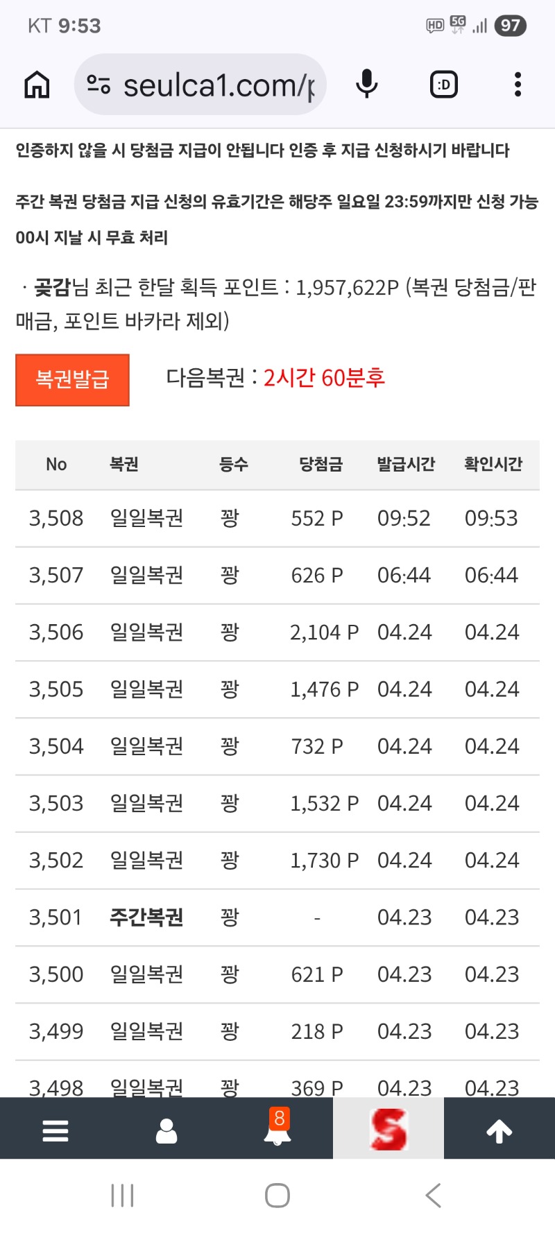 일복 계속 꽝 이네요 곶감 2 0 0 09:55:16 http://잘가시오 + 1 0 0 https://seulca1.com/bbs/board.php?bo_table=free&wr_id=3832565&page=1 Author 7 3 Lv.18 곶감 18 148,343,283 (80%) 곶감님 보유 포인트 : P 2,521,132 +2 04.25 맛있게 점심 식사 하세요 +2 04.25 일복 계속 꽝 이네요 +8 04.25 119년 초등학교 총문회장입니다 +6 04.25 아침식사 하세요 +1 04.25 커피 감사