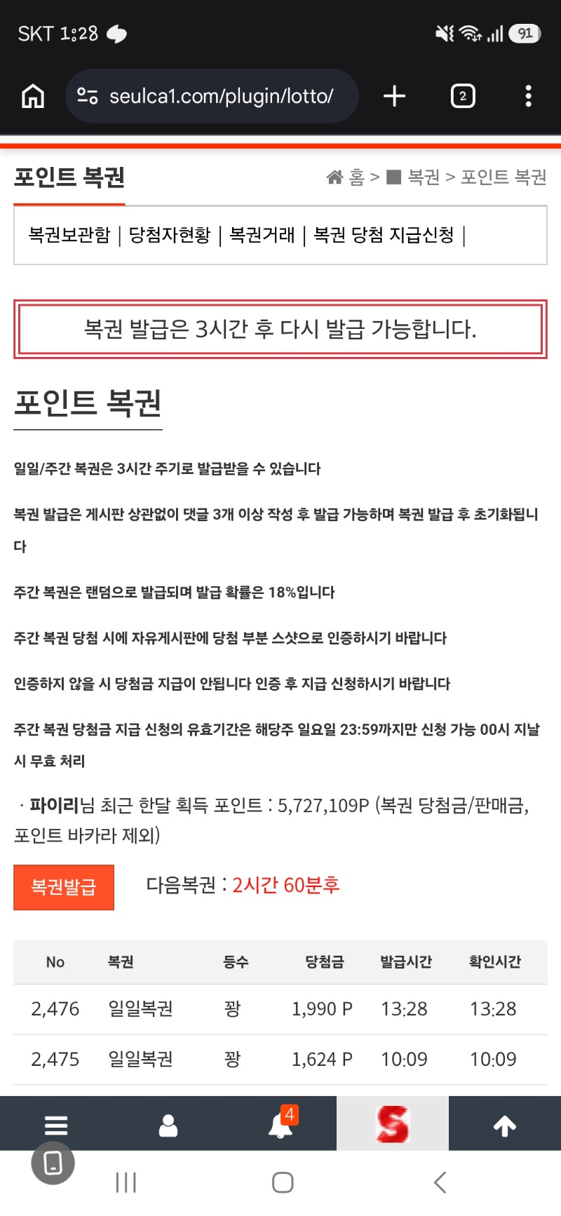 점심복권도 파이리 2 0 0 13:29:14 *기프티콘 바코드 노출 주의* <- 꽝~~~ 에잇 ㅠㅠ 0 0 https://seulca1.com/bbs/board.php?bo_table=free&wr_id=3836295&page=1 Author 3 1 Lv.13 파이리 13 20,762,954 (55%) 파이리님 보유 포인트 : P 12,797 04.26 이모 찾으러 가야겠네.. +2 04.26 점심복권도 04.26 츨첵하고!! +1 04.26 오늘 첫복권은용?? 04.25 오늘자 복권은 다꽝이네 ㅠ.ㅠ