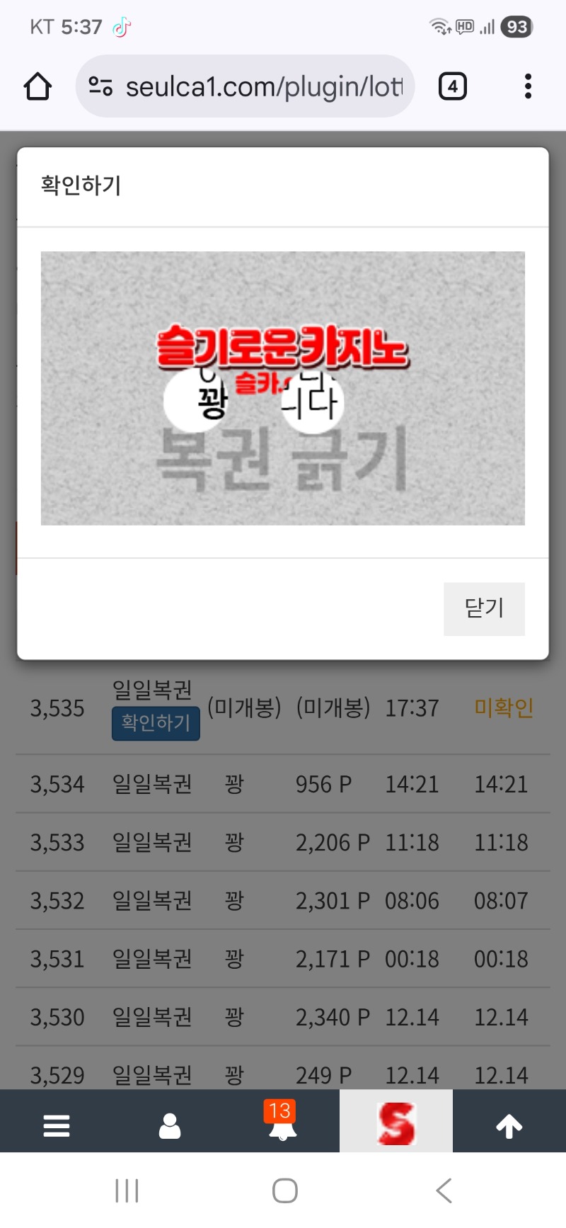 퇴근복권도 역시나~~ 지킴이 0 0 0 12.15 17:38 *기프티콘 바코드 노출 주의* <- 언제 줄끄니^^ 0 0 https://seulca1.com/bbs/board.php?bo_table=free&wr_id=3387804&page=11 Author 9 4 Lv.18 지킴이 18 129,555,981 (49%) 지킴이님 보유 포인트 : P 1,488,878 +2 12.16 수고하셨습니다 ~~ 전이만.. +4 12.16 내복에 무슨 주복당첨 주겠냐~~ +1 12.16 첫일복은..꽝 12.16 출첵 인증 +1 12.16 이번주 첫 쌍복이..