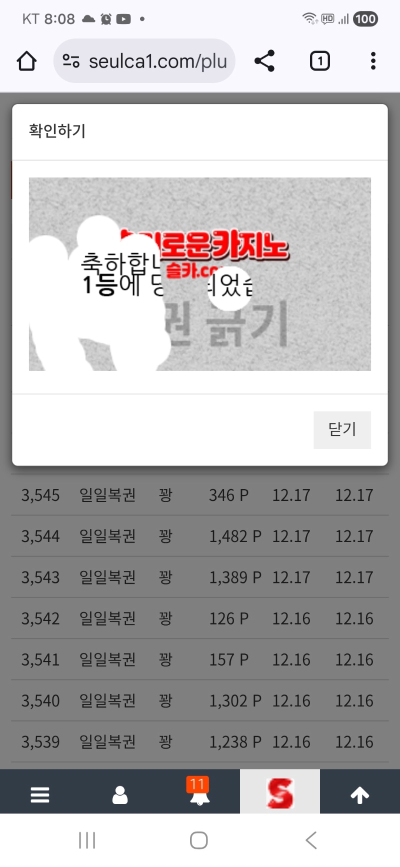 모닝복권은..1등 지킴이 10 0 0 08:14:12 *기프티콘 바코드 노출 주의* <- 0 0 https://seulca1.com/bbs/board.php?bo_table=free&wr_id=3395944&page=11 Author 9 4 Lv.18 지킴이 18 130,265,384 (50%) 지킴이님 보유 포인트 : P 1,326,988 12.18 형난 시청료 50만포 빠지고~~ +2 12.18 형난슬포 투표~~ +10 12.18 맛저 하세요 오늘은 양념갈비다~~ +4 12.18 일복 10등 ~~ +2 12.18 즐퇴합니다