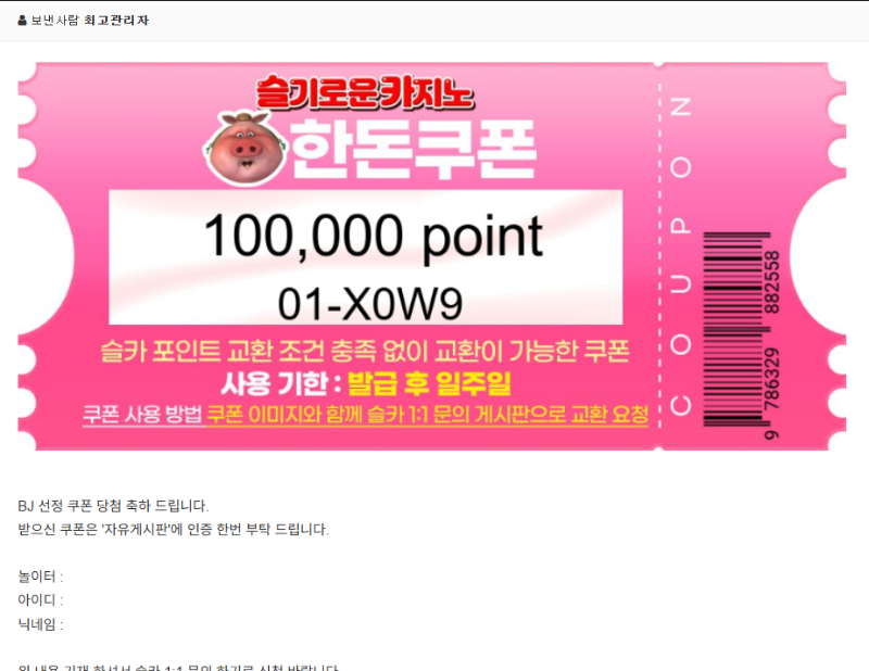 한돈 추겜성공 쿠폰 나대로기사 3 0 0 01.24 17:31 *기프티콘 바코드 노출 주의* <- 0 0 https://seulca1.com/bbs/board.php?bo_table=free&wr_id=3513357&page=11 Author 3 1 Lv.12 나대로기사 12 14,277,828 (25%) 나대로기사님 보유 포인트 : P 182,338 +1 03.12 오랫만에 주복도 꽝... +2 03.12 오늘까지 71연꽝 기록중 +22 03.12 레디포춘 1546 +1 03.12 이번주는 주복이 안와요 ㅠ.ㅠ 1등한번가보자~~ +3 03.11 복권 67연꽝인데 언제쯤 10등이 올까요???