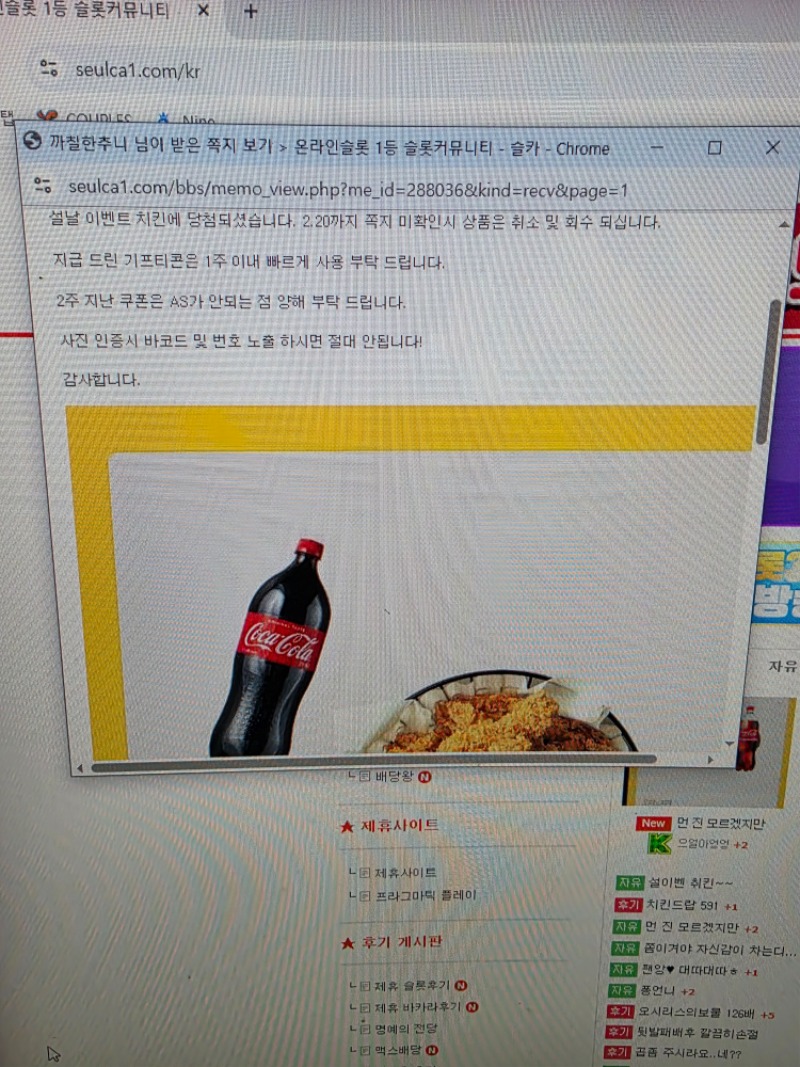 설이벤트 이틀연속 치킨 까칠한추니 4 0 0 02.18 00:44 *기프티콘 바코드 노출 주의* <- 오늘은 마지막날 한우주세요.^^ 0 0 https://seulca1.com/bbs/board.php?bo_table=free&wr_id=3594837&page=11 Author 0 0 Lv.12 까칠한추니 12 13,472,781 (9%) 까칠한추니님 보유 포인트 : P 558,596 03.13 출석요 +1 03.12 양이님 사랑합니다 +1 03.12 늦은퇴근요 +1 03.12 출석요 +1 03.11 좋은 저녁시간 되세요