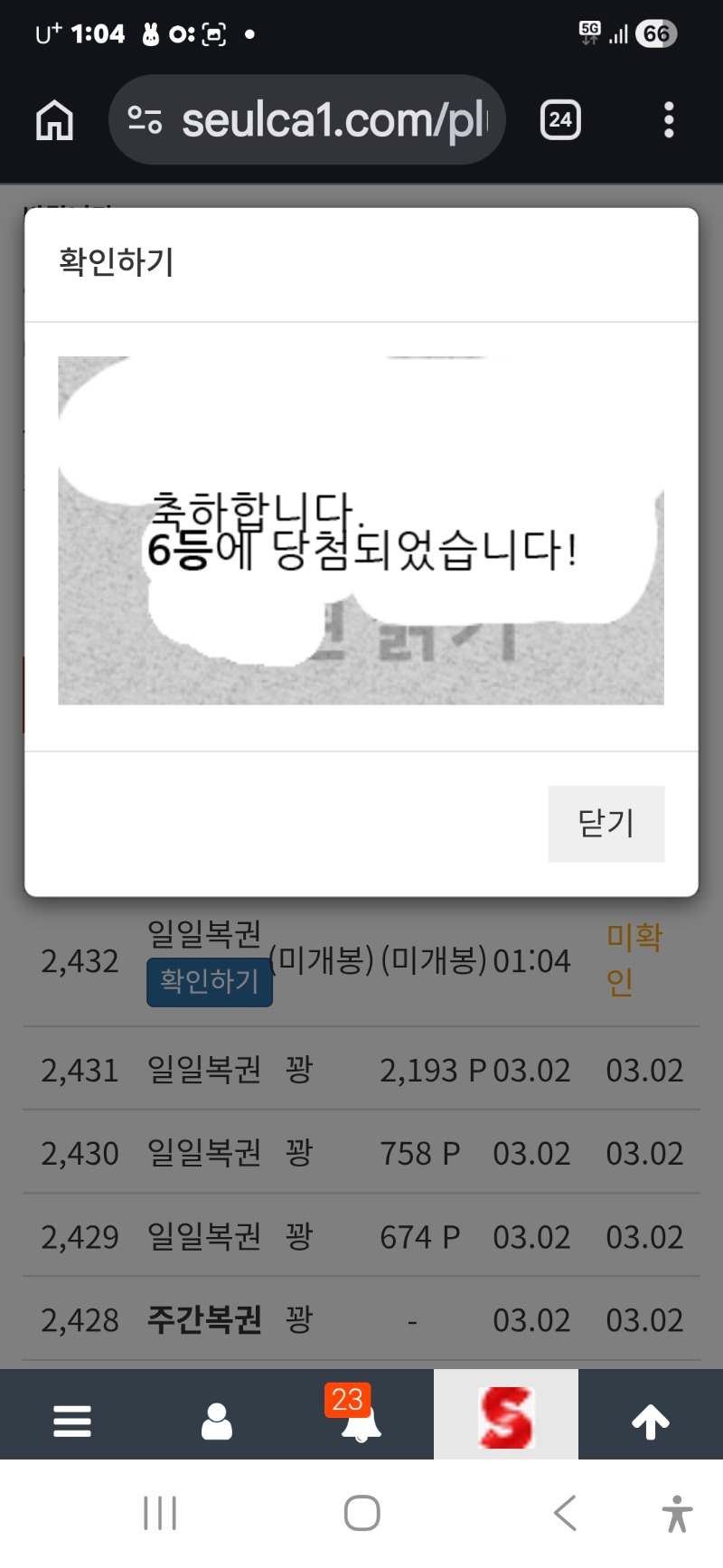 일보기6등당첨 ㅎ 안양하마 12 0 0 01:05:12 *기프티콘 바코드 노출 주의* <- 0 0 https://seulca1.com/bbs/board.php?bo_table=free&wr_id=3638812&page=11 Author 3 1 Lv.16 안양하마 16 60,666,820 (53%) 안양하마님 보유 포인트 : P 1,813,348 03.03 맛점하세요 +4 03.03 연속 쌍복 출현 ㅎ 당첨이 안돼서 그러치 그래두 조으다 +8 03.03 심쿵이 출현 +6 03.03 굿모닝입니다 +3 03.03 이만 자러 갑니다