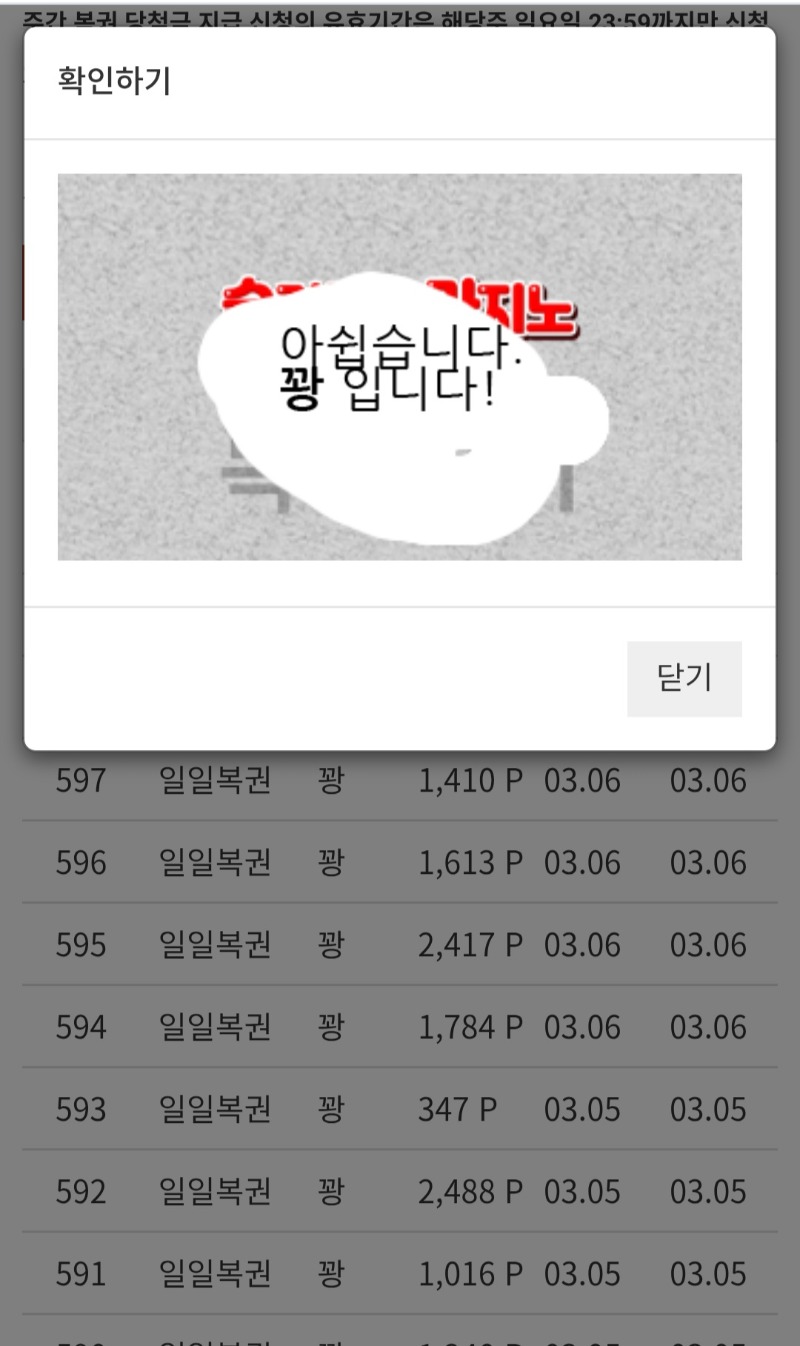 오늘도 꽝출발 꼴초 2 0 0 00:06:04 *기프티콘 바코드 노출 주의* <- 0 0 https://seulca1.com/bbs/board.php?bo_table=free&wr_id=3653619&page=11 Author 0 0 Lv.12 꼴초 12 17,975,451 (99%) 꼴초님 보유 포인트 : P 3,267,006 +15 03.07 올천 297배 +5 03.07 주복은오지도않고 일복은계속꽝이고 ㅋ +10 03.07 올천 276 +16 03.07 렐업 준비완료~~ +6 03.07 일복이꽝 ㅎ
