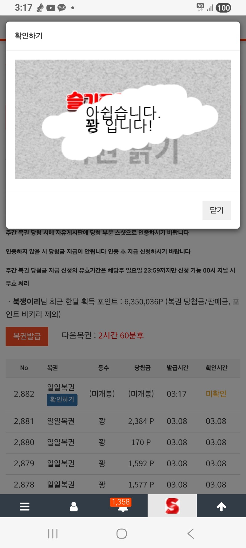 모닝복권 북쟁이리 1 0 0 03.09 03:17 *기프티콘 바코드 노출 주의* <- 이번주도 꽝으로 .ㅎ 0 0 https://seulca1.com/bbs/board.php?bo_table=free&wr_id=3663218&page=11 Author 4 3 Lv.14 북쟁이리 14 28,576,360 (79%) 북쟁이리님 보유 포인트 : P 1,795 +1 03.09 맛저하세요 +1 03.09 야호.퇴근입니다. +2 03.09 활동포인트 감사합니다 +1 03.09 퇴근 30분전.ㄷㄷ +2 03.09 맛점하세요