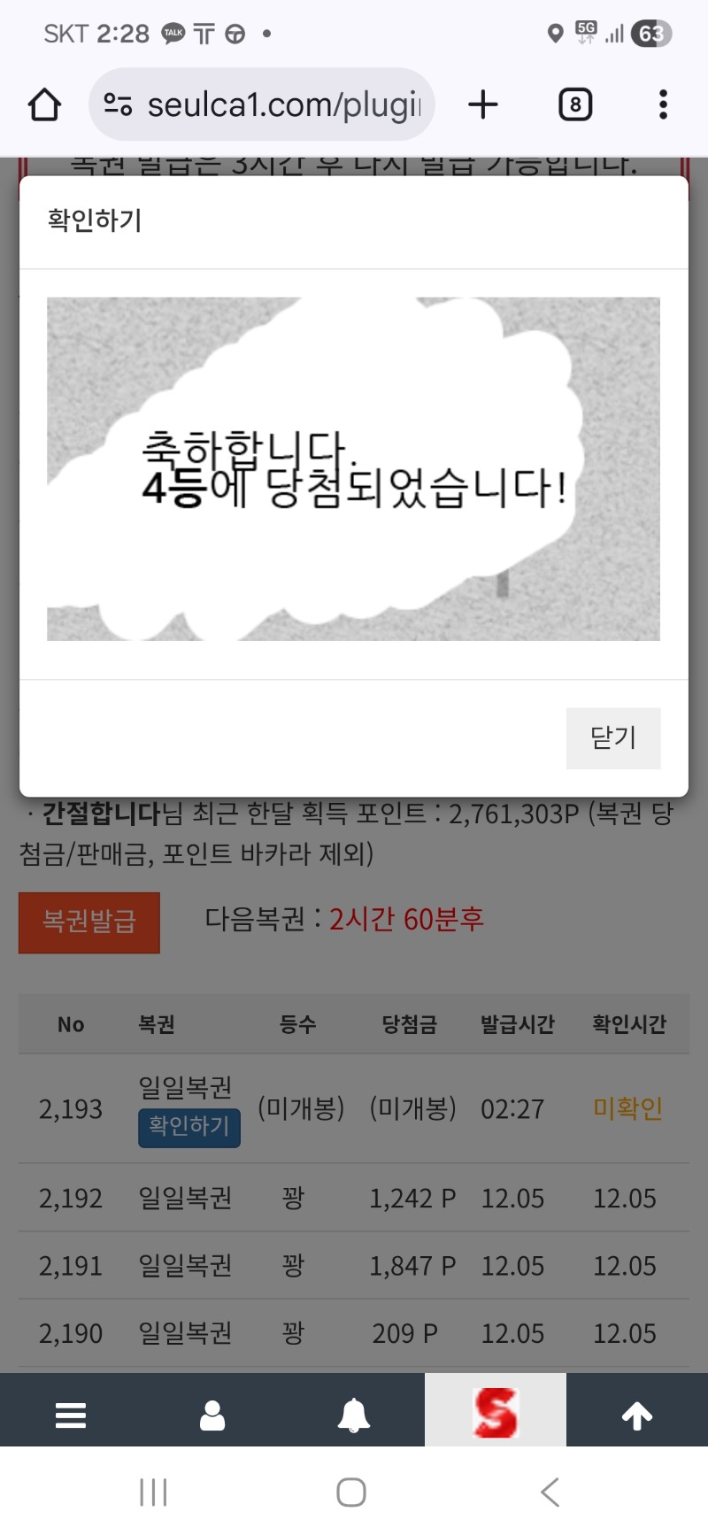 간절합니다님 4등 나이스요~~축하합니다 ~~