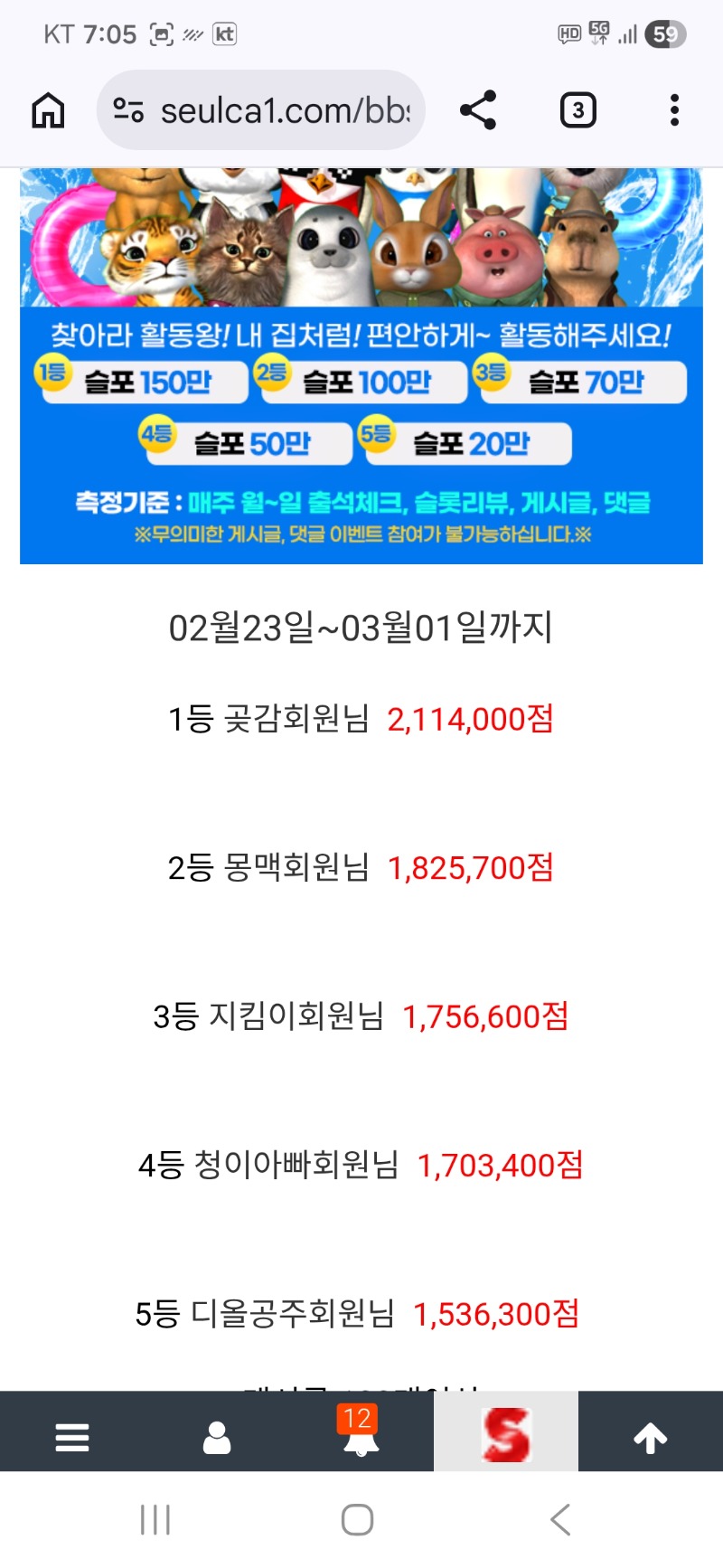 활동왕 3등 ~~ 지킴이 16 0 0 03.02 19:06 *기프티콘 바코드 노출 주의* <- 감사합니다 ~~ 0 0 https://seulca1.com/bbs/board.php?bo_table=free&wr_id=3637774&page=20 Author 10 5 Lv.18 지킴이 18 152,462,361 (87%) 지킴이님 보유 포인트 : P 5,523,939 +2 03.03 맛점 하세요 ~~ +3 03.03 모닝복권은..꽝 +4 03.03 굿모닝입니다 +3 03.03 밤이 깊었습니다.전이만~~ +2 03.03 첫일복은..나가리데쓰~~